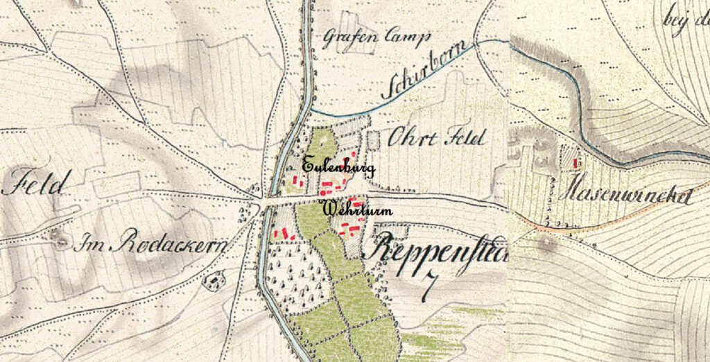 In der Kurhannoverschen Landesaufnahme 1772/74 sieht man den Standort der Eulenburg (ursprgl. Ulensborg) und des Wehrturms. Jeglicher Verkehr aus Richtung Verden/Bremen musst durch dieses Nadelöhr.